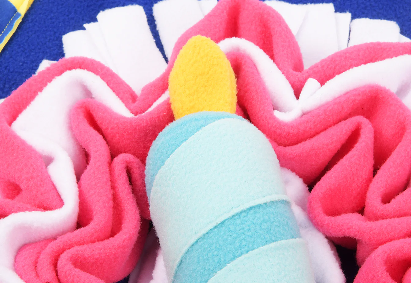 Turn everyday playtime into a fun celebration with this colorful Snuffle Mat designed to keep your dog mentally stimulated and happily engaged. Featuring multiple fabric layers, hidden treat pockets, and an interactive squeaky element, it encourages natural sniffing behavior while providing rewarding enrichment.